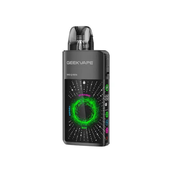 El Geekvape Digi Q Vista Pod Kit marca un antes y un después en el mundo del vapeo. Es el primer pod con pantalla curva 3D, una auténtica revolución visual y táctil que ofrece una experiencia inmersiva y moderna. Equipado con una batería de 1600mAh, este dispositivo ofrece hasta 35W de potencia y tres modos de uso para adaptarse a cada estilo de vapeo: ECO (batería de larga duración), INTELIGENTE (experiencia de vapeo equilibrada), y DINÁMICO (ráfaga potente).